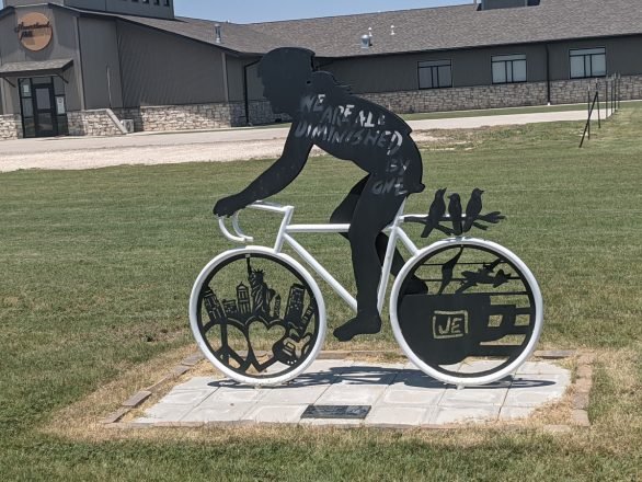 It would be an emotional day, made even more so due to the fact that I would most probably be riding past the spots where both Eric and John had been hit, about 200 kilometres up the road in Kansas. I had been messaging with John’s wife Susie and was aware of a ghost bike and memorial for John between Leoti and Scott City but was unaware if there was one for Eric. I would be be keeping a keen eye out.