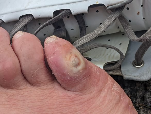 The first 75ks to a gas station on the outskirts of Berea were tough but satisfying. I stocked up and sat out the front consuming some of what I had bought. I took the opportunity to take off my shoes for some relief. A blister on the little toe of my right foot was starting to really hurt. It had been tender pretty much all race, no doubt due to friction in wet socks from the early rain. I had last put a plaster on it a few days ago but hadn’t checked the actual condition of the blister since. I daren’t now as I had a feeling I wouldn’t be overly enthused by what I saw.