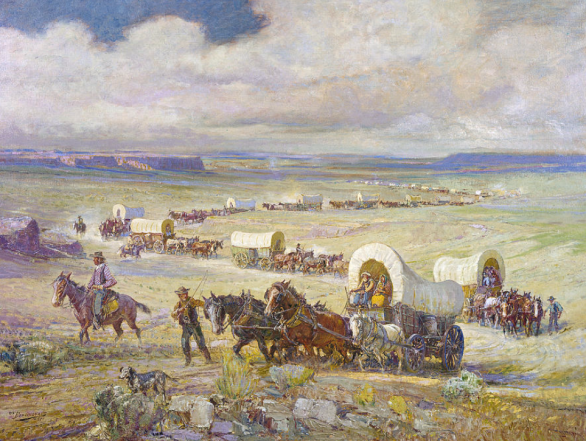 Wagon Trail, a painting by Oscar Edmund Berninghaus.
