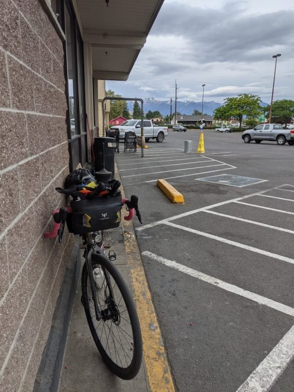 Even though I still had plenty of supplies on board I stopped at the Hitching Post convenience store on the main street. In my route notes I had highlighted a couple of possible services option over the next stretch but their opening days/hours were sporadic. The next bankable services was a gas station in Cambridge, Idaho over 100 kilometres further up route. I bought a couple of ice creams, a Red Bull and water to top up my water bottles, and sat out the front to consume quickly while I checked Trackleaders. Those 6 dots were now strewn out over the next 150 kilometres, the first (MA) was only 20 kilometres away.