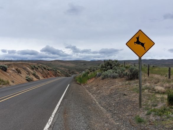 Out of town north on Cedar Street and then a right turn onto State Highway 86 heading east, a road that would be companion for the next 5 hours and take me to within sight of the Idaho state line. Up into the wide open expanse of the Oregon High Desert proper, the snowcapped Wallowa Mountains behind me and to my left, urging me onwards.