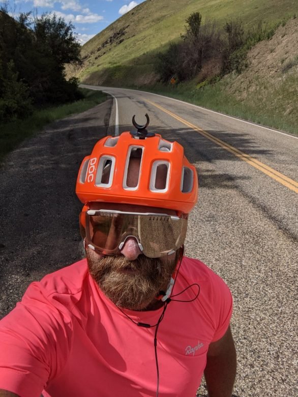 However, as soon as the road started to trend downwards, a perfectly cambered, gently winding road that followed the path of the Powder River through beautiful scenery at around negative 2-5% (perfect for a large lad!), the adrenaline started to kick in and of course I gave it some. Into the drops, into the heaviest gear, giddyup horsey! Commonsense out the window. Yes I will never learn but this is the way I ride my bike. I fall in a heap when I feel shit and I have a red hot crack when I feel good.