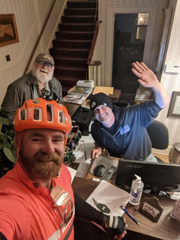 I roll into New Meadows just after 10:30pm. Unexpectedly the convenience store, Browns Mountain Market is still open and I pop in to buy a sandwich and chocolate milk for dinner. I have no idea of accommodation options and ask the friendly clerk for a tip. There are 2 hotels in town, opposite each other just off the main street to the left. I chose the one that looks more open, the Hartland Inn, wisely as it turns out as the manager was expecting me! He had been keeping a keen eye on Trackleaders.