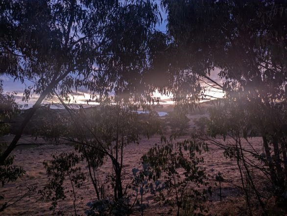 Friday March 30, 2023: sunrise through the trees.