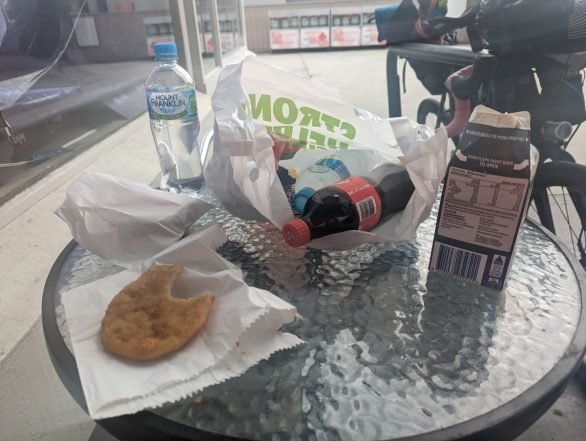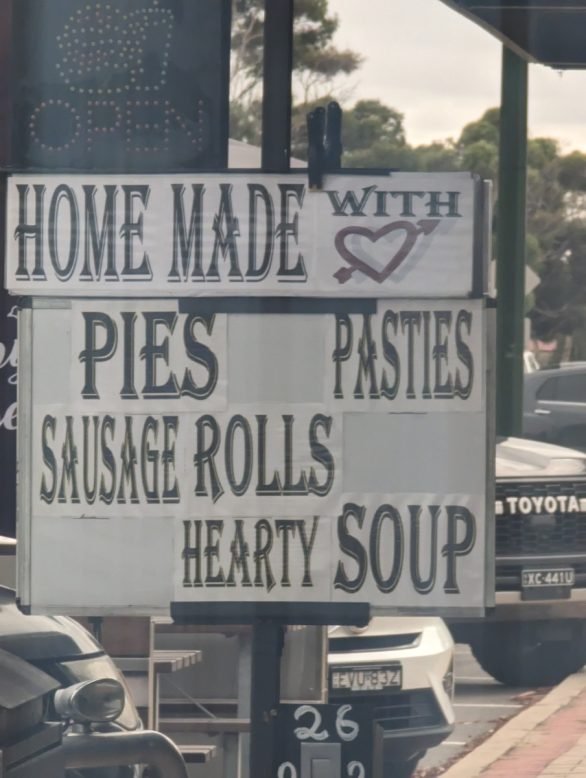 Saturday April 1, 2023: Lunch in Meningie. I settled on a few potato scallops instead of a Pastie.