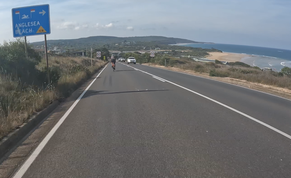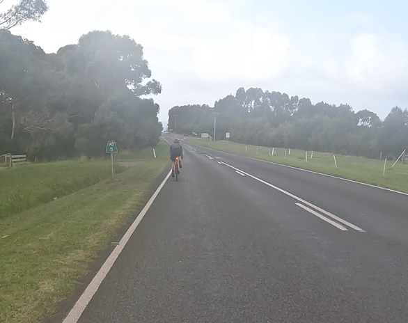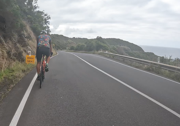 About 7k’s out of Apollo Bay a lady cyclist coming towards me pulled a U’y and wordlessly careened off in front……….WTF!