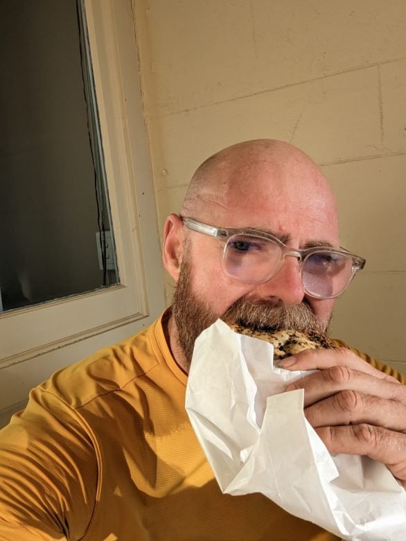 The 32k’s to Bruce Rock took almost 2 hours. Sluggish and frustrating going. The terrain was dead flat, cycling topography made for a large lad in lycra, but not so much with head and cross winds. I was out of food and had been rationing water since Shackleton so the 24hr BP Servo that I had noted in my route notes was top of mind, not that I could find the damn place. I settled on the general store that was attached to the Roadhouse and Hotel, which upon scouring the main street, up and back seemed to be the only place open this early on a Sunday morning.