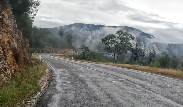 Friday April 7, 2023: Left turn, back onto the Great Alpine Road.