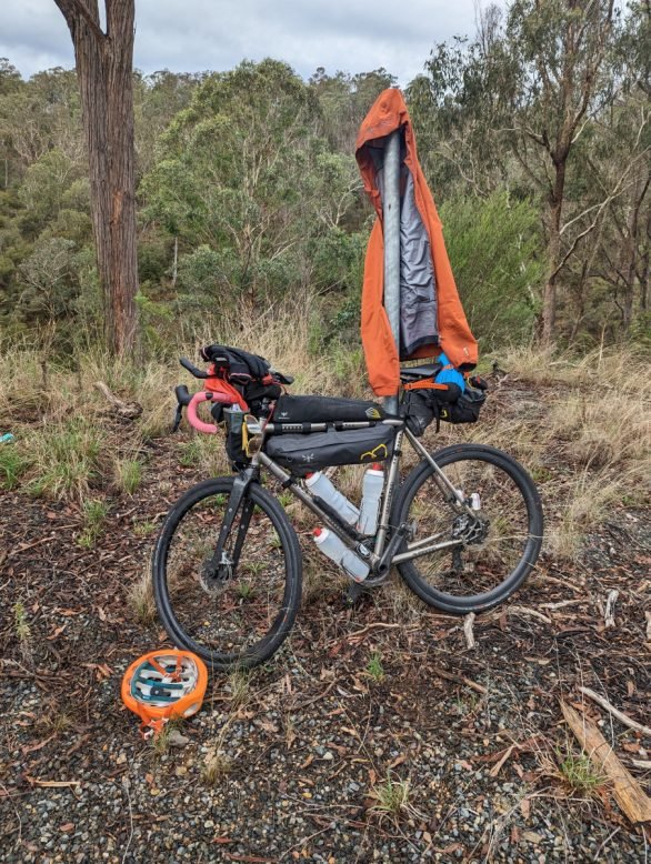 A frustratingly slow, tough, wet 25k’s to the little town of Bruthen (pop.814) in just under 2 hours! There were a shedload of 4WD’y types (as distinct a species of road user as the Gray Nomad although without a commonly used nomenclature), milling about in town.