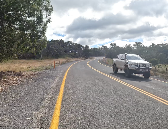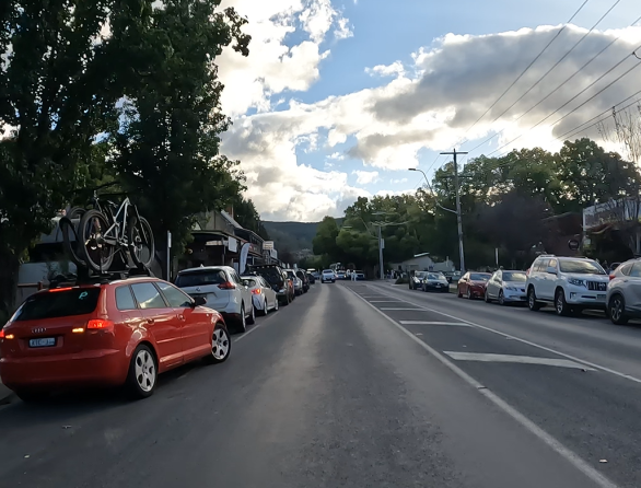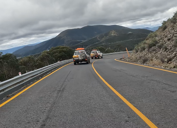 Saturday April 8, 2023: Plenty of traffic now on the Great Alpine Road.