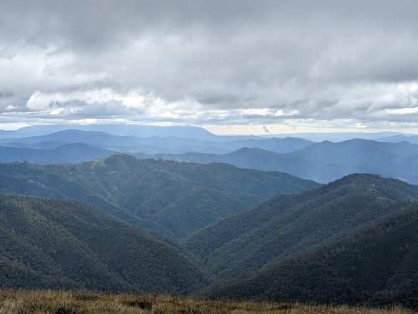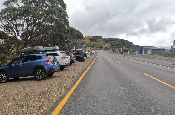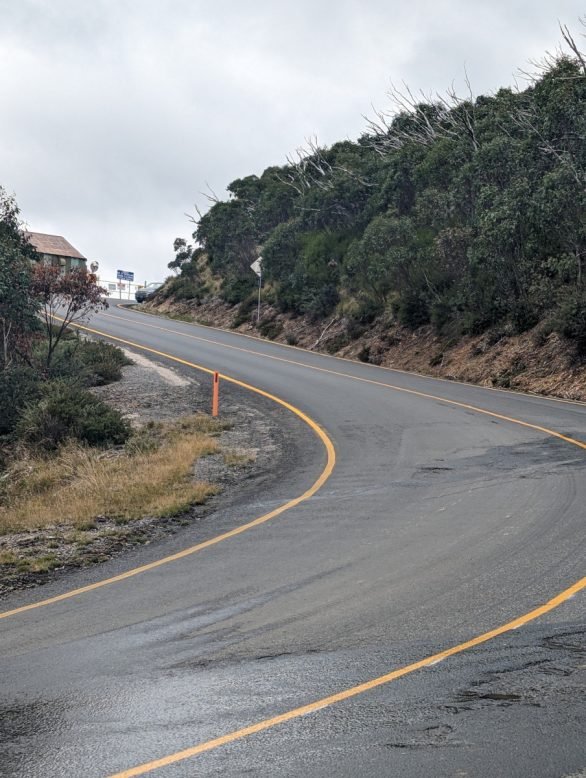 Saturday April 8, 2023: Just about to the summit now, rolling through the Mount Hotham Ski Resort.