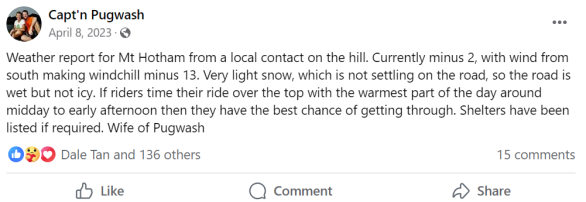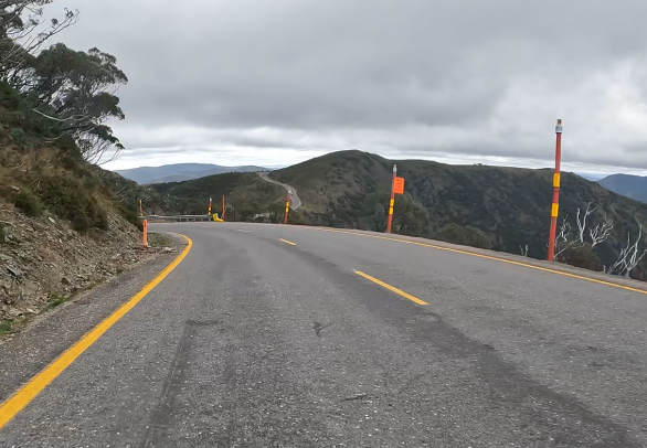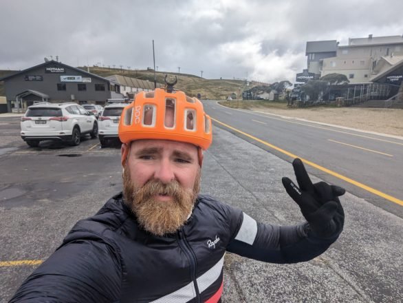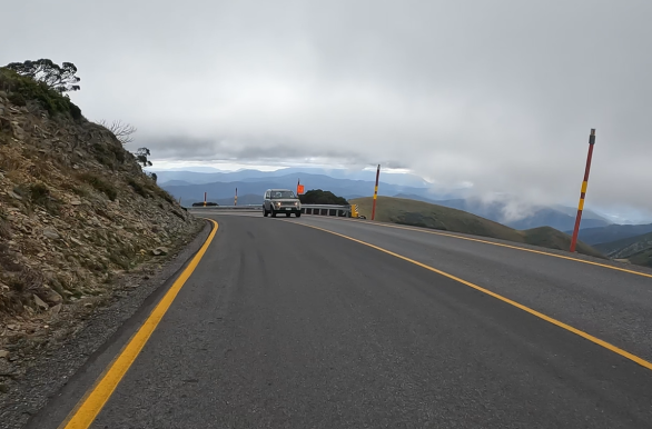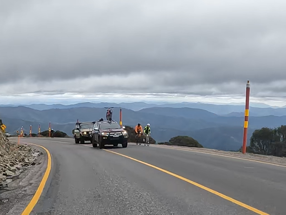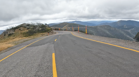 Saturday April 8, 2023: Just about to the summit now, rolling through the Mount Hotham Ski Resort. Take 2.