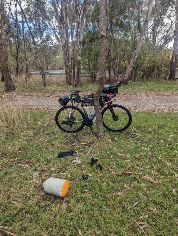 • Instead I went back to the tried and tested throw a tube in method, but on the first attempt to pump it up I snapped off the valve core and had to insert another one using my never used in the wild before valve core tool.