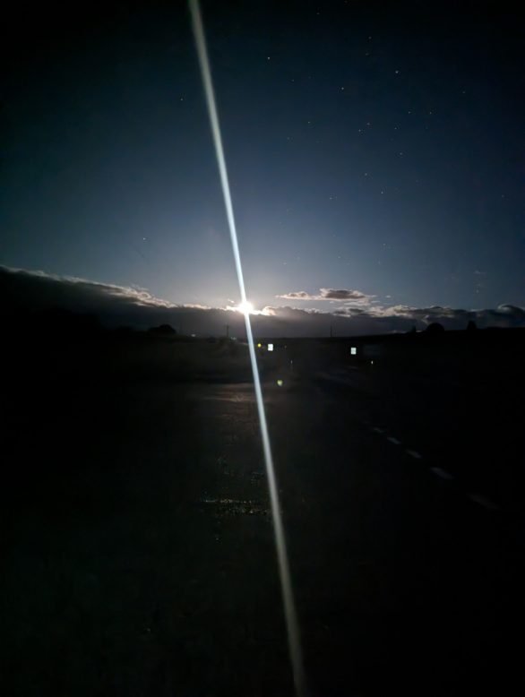 I was feeling frustrated at my distinct lack of progress over the last 4 days. My average daily distances were cratering, from 222 kilometres per day over the first 18 days to 160 kilometres per day over the last four days. Yeah, geographical and weather stuff, blah, blah, blah……..but I wasn’t helping myself with the late starts – 8am was the average over the corresponding four days. And here I was after recognising the rot and still not introducing rubber to bitumen until 7 bloody 21 am!