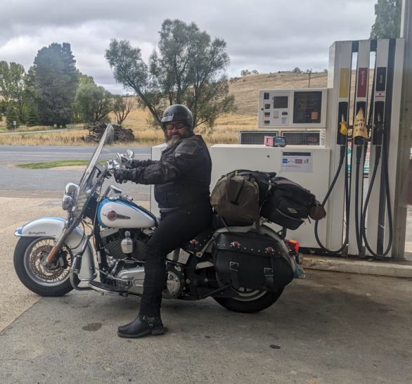 Tuesday April 11, 2023: I made a new friend at the Adaminaby Servo. A fellow 2 wheeled adventurer who had just ridden back from Melbourne via a slightly different route to me.