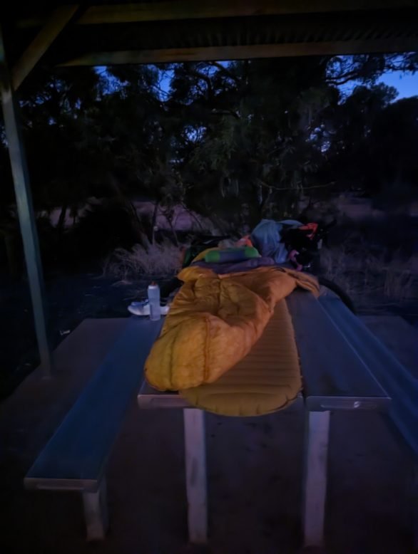 Oh well, I’ll have a little sit down at the picnic table for a breather and soak up the sun for a bit. It had been another coolish morning. I checked my route notes: “Bodallin – Roadhouse 24hr??, not much, playground for camping??”. Shit eh, I hope Raymond Friedrich (aka “2 Wheel Vagabond”) and Canberra based Englishman Matt (aka “Ken Behren” – see what he did there?), hadn’t relied too heavily on the Bodallin Roadhouse being open 24hrs. I had had a beer with Ray and Matt at the rider function in Fremantle, both professing to limited knowledge of services on route. Being the kind, sharing individual that I am, I of course shared my detailed route notes with them.