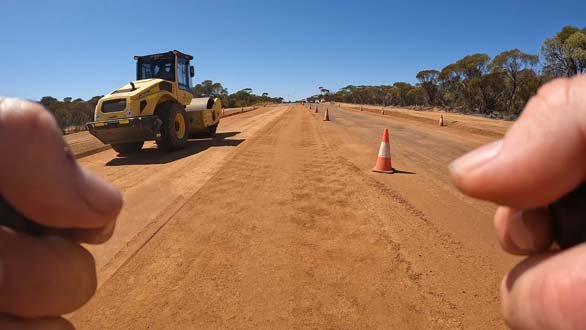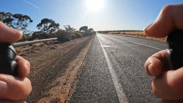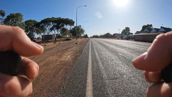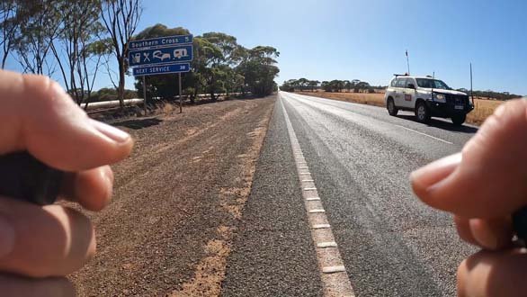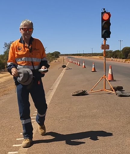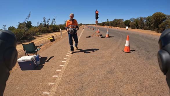 About 10k’s out of Southern Cross I came across a section of roadworks with a stop and go setup. As I rolled up to it the operator ambled towards me with a smile on his face, obviously up for a chat. As he got closer his hat blew off and so before any initial pleasantries were able to be exchanged he was off to chase it down.