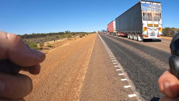The first one that passed me early that morning had at least 4 bloody trailers. It must have been close to 50 metres long! The length of an Olympic sized swimming pool for crying out loud.