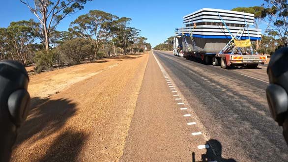 The road was now running parallel to the Goldfields Water Supply Pipeline, a pipeline that transports drinking water 530 kilometres from the Mundaring Weir in Perth (which we rode past on Day 1) to communities in WA’s arid Eastern Goldfields, namely Coolgardie and Kalgoorlie. At the time (it was commissioned in 1896 and completed in 1903), it was internationally regarded as the largest engineering undertaking ever! It still generates billions of dollars in economic activity.