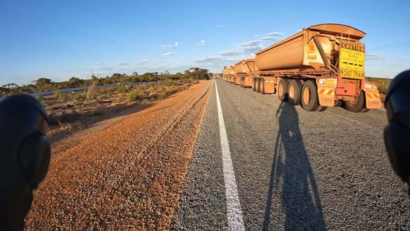 Enter stage right, the real modern day Road Warriors………the Road Trains……..to interrupt the serenity. Now that the route had rejoined the Great Eastern Highway, an essential link in a highway network that runs the width and height of Australia, these massive transporters of all matters mining, agriculture, consumer goods and everything in between, would become us Indi-Pac’ers frequent road companions for at least another week.