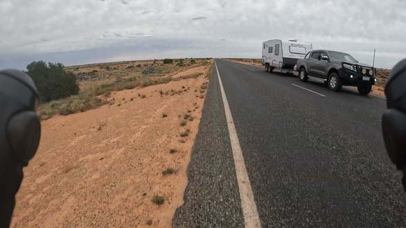 - Plenty of “Grey Nomads”, ie road tripping retirees. The term was popularised apparently following the 1997 Australian documentary Grey Nomads, which captured the phenomenon of older travelers who made their homes wherever they parked. (ref the video below). I had seen a few over the last couple of days but they were out and about big time today. Perhaps taking advantage of the overcast conditions to track down campsites anew. I had been warned about these guys and their possible inexperience and questionable abilities towing a caravan but so far so good.