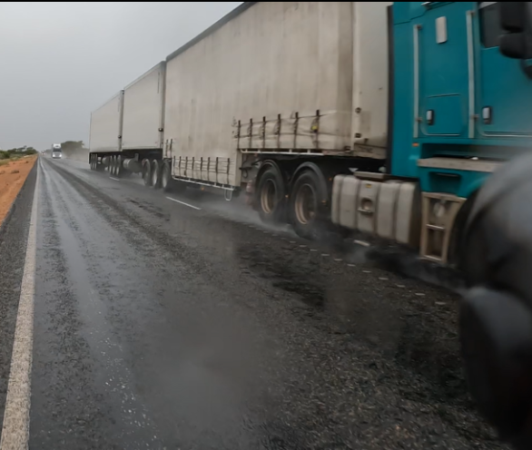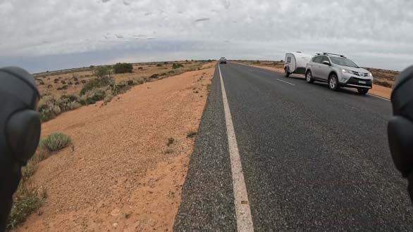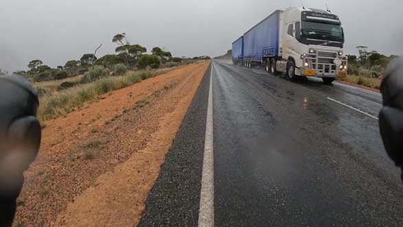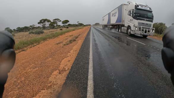 …..and then it rained, not a heavy rain but a light persistent precipitation that pooled on the road and made the spray from oncoming road trains quite the obstacle – keeping the mouth shut and head ducked whilst the beasts whooshed by was an essential tactic to avoid a face full of liquified road detritus.
