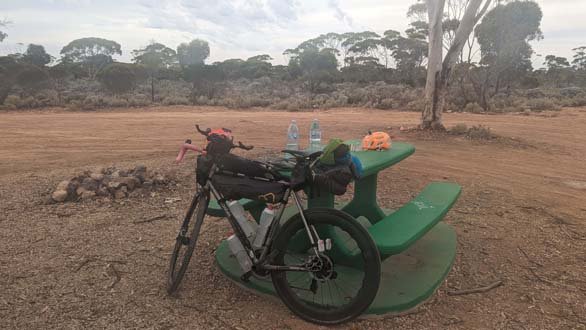 I wheeled my bike from my room around to the front of the Balladonia Roadhouse, wondering if I’d see Alison Skinner (aka “Stirling Roadrunner”). I’d received a text message from Alison after I’d arrived last night, checking up on me and offering a spare bed in her room should I not have secured accomodation. I was quite touched by the offer, it was very generous.