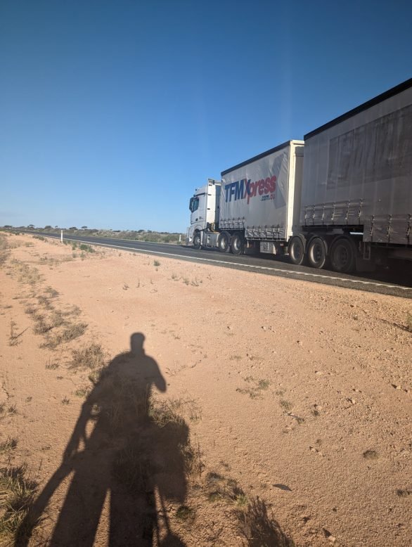 “Here you go mate” said the truckie………a tiny little fella which seemed ridiculous in the context of the road train he was captaining, as he proceeded to drop down from on high a full 1.5 litre bottle of water……..a fresh, cold one at that.