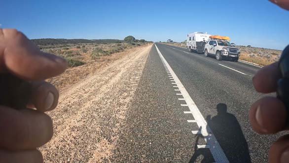 I started rationing water immediately but at the bare minimum, ie tiny sips to avoid my mouth drying out, it became glaringly obvious that I was going to run out of water hours before I reached Mundrabilla.