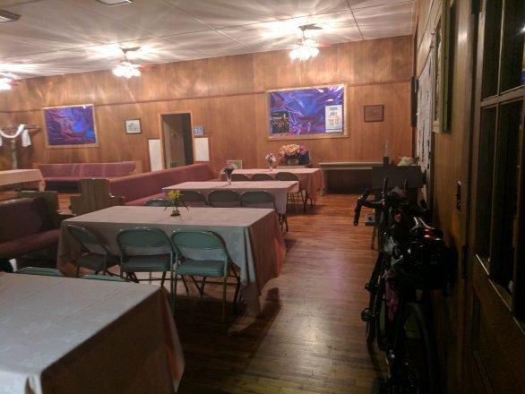 The hospitality didn’t end there. Once we had “checked in” to our digs in the Sunday school part of the huge wooden Church, the local cafe which was closing reopened the kitchen to knock us up some deep fried goodness.
