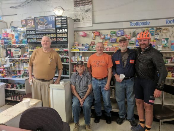 Perhaps attracted by the frivolity of 2 sweaty cyclists on the main street of his otherwise very quiet hometown, the guy who had asked me earlier if I needed help approached us for a chat. Once he found out what we were up to he was utterly astonished at our exploits. “I couldn’t even ride 5 miles around town”, that kind of thing. He was so impressed he wanted to help us in some way, buy us food and drink, give us directions. At one point I thought he was going to offer us cash.
