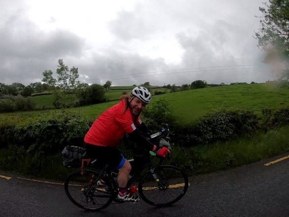 Thursday June 6, 2019. A half smile during the nightmare section from Omagh to Derry. It soon disappeared after I realized I’d mistakenly just walked my bike up a 1 kilometer hill – I’d taken a wrong turn.