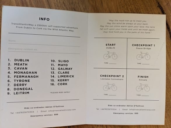 Thursday June 6, 2019. The Brevet card for the 2019 Trans Atlantic Way.
