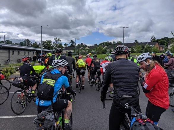 The 12 kilometer ride from Smithfield Square on the north bank of the River Liffe, about a kilometer and a half from the center of Dublin to the starting line at the National Sports Campus took around 45 minutes, including a couple of brief stops to check my tyre pressure. Flat tyre paranoia was kicking in early. Subconsciously I was probably worried about missing the start, not unfounded as I only arrived at the start 10 minutes before the first wave was due to set off at 10:30am. That only left me a short while to get my Brevet card stamped and to catch up with me ole’ Scottish mate from the 2017 Trans Am, Russell Jones. I’d only seem him very briefly the day before at registration before I had to rush back to the apartment to sort my mapping issue. So much to catch up on but nowhere near enough time. It would have to wait until during the ride…..maybe.