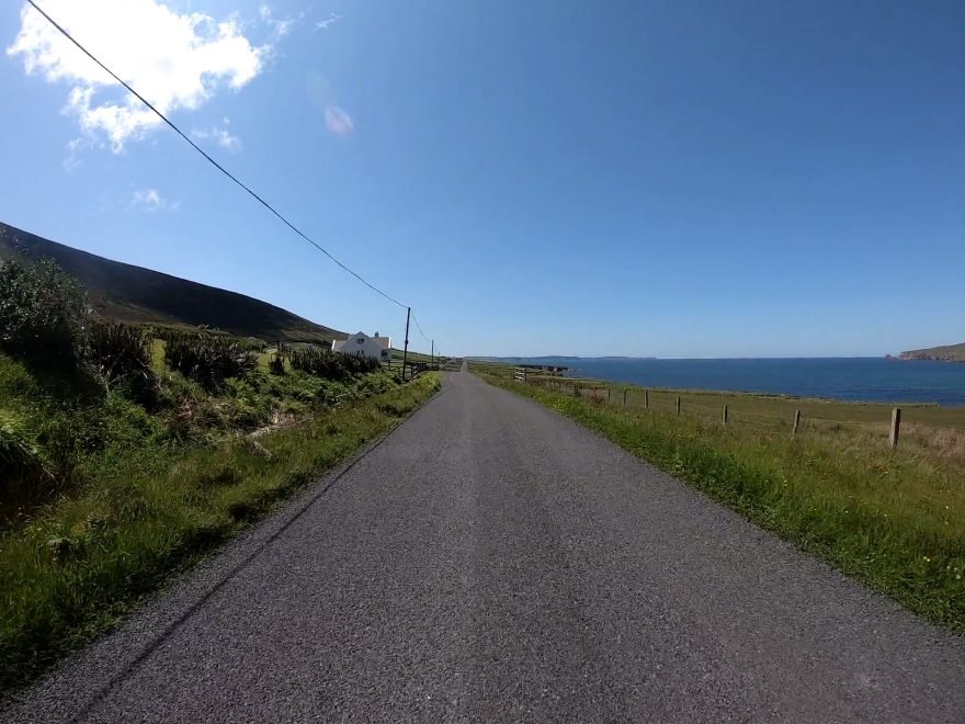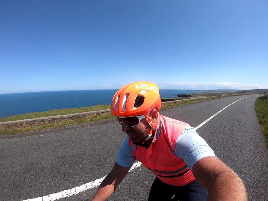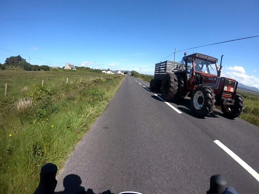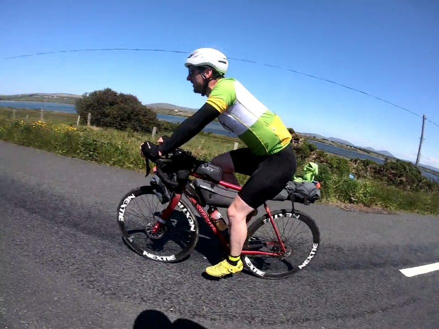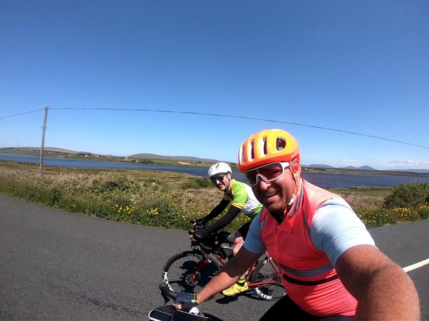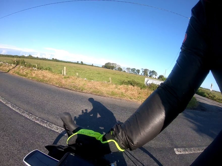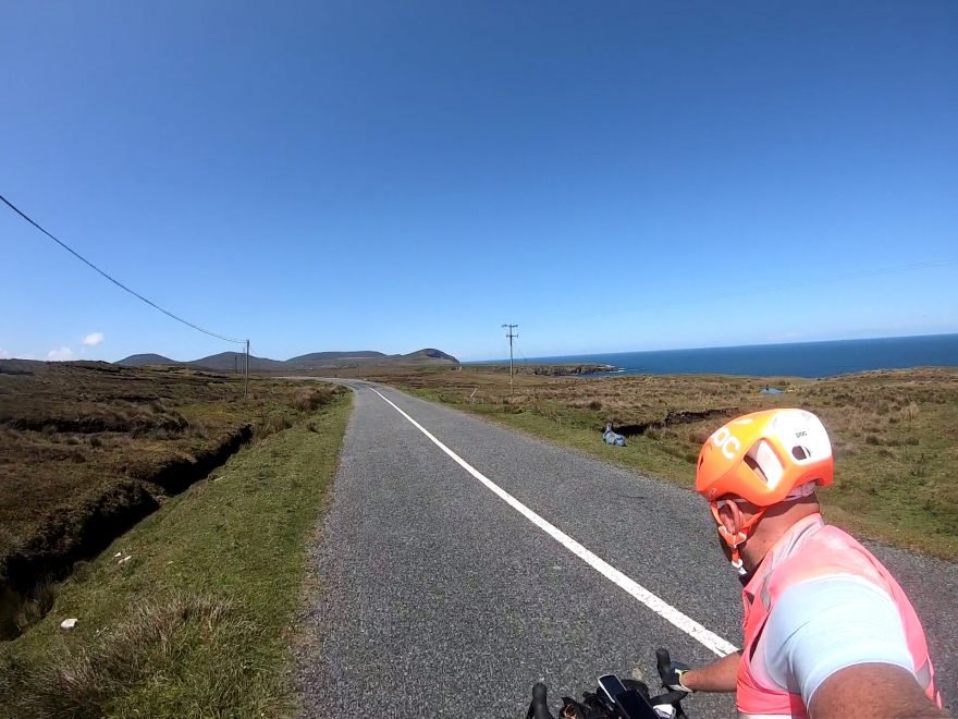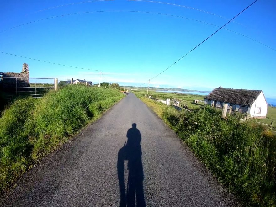 As I coasted on a downhill section between the towns of Enniscrone and Ballina I took out my GoPro and filmed myself. Not an arms outstretched shot designed to take in mostly background, rather an angle designed to capture me, my emotional state……….very normal behavior.