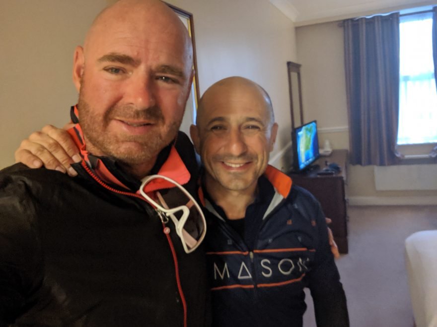 We briefly met outside a spar On day 1 about 100km in you had some gear cable issues i was another TAW rider (Karl) rocking the pink Rapha gillet